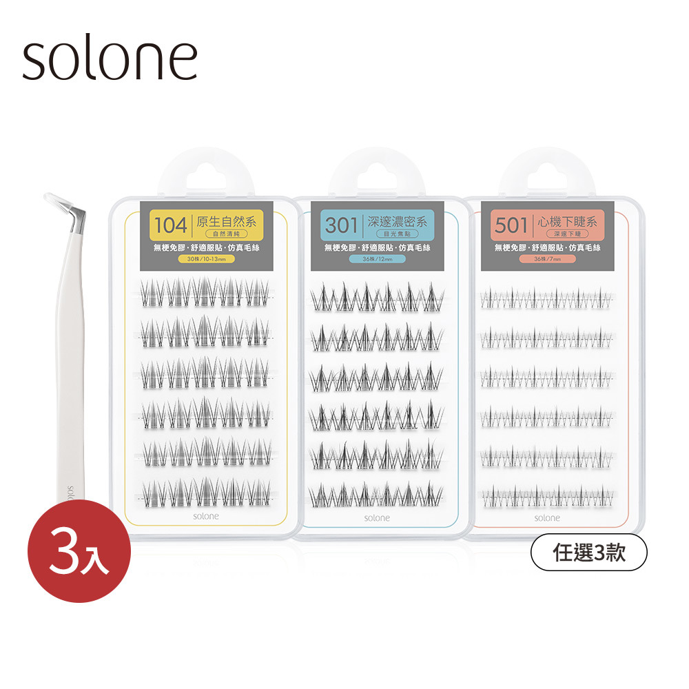 【新品】Solone 睫對滿意愛用組(免膠假睫毛/任選3款+細睫夾/任選1款)