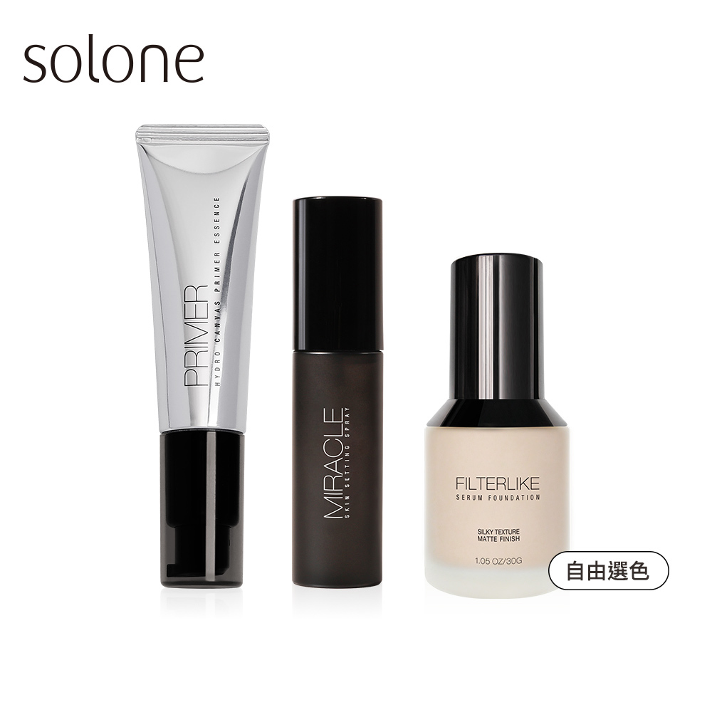 Solone 水光底妝組(補水精華/任選1款+粉底液/任選1款+定妝噴霧)