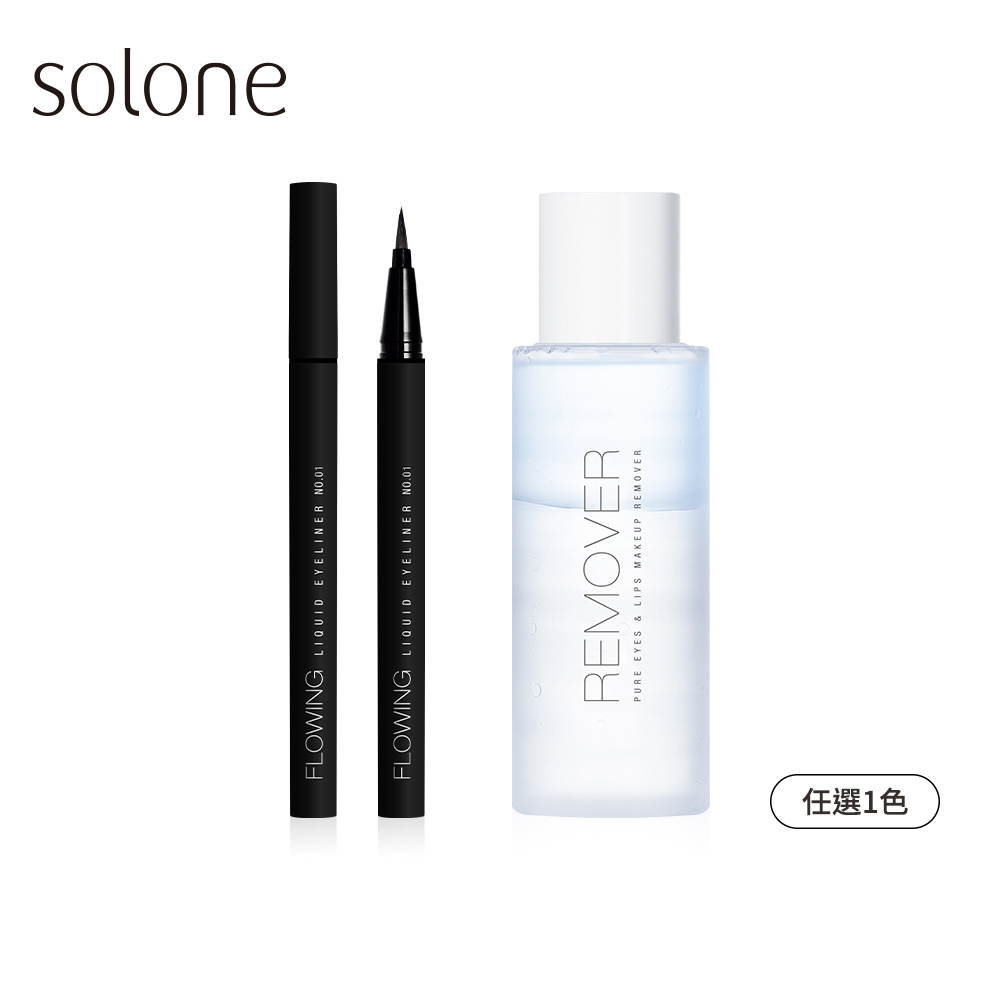 【新品】Solone 電眼卸妝組(眼線液筆/任選1色+淨膚水嫩眼唇卸妝液100ml)